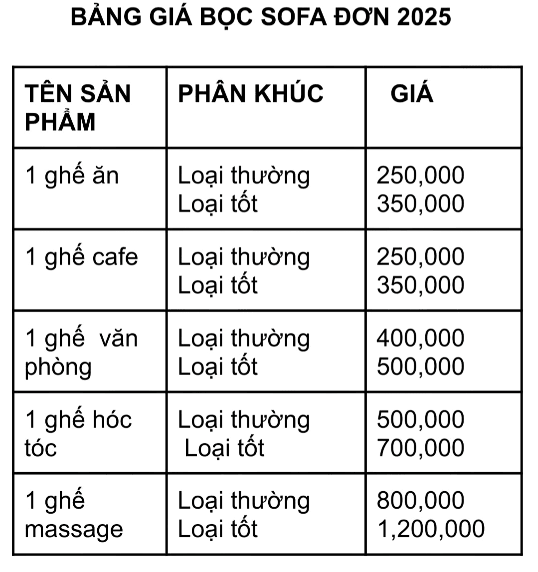 Dịch vụ bọc ghế sofa của chúng tôi, khách hàng không cần cọc trước, sau khi bàn giao ghế cho quý khách rồi mới thanh toán, nên quý khách yên tâm.