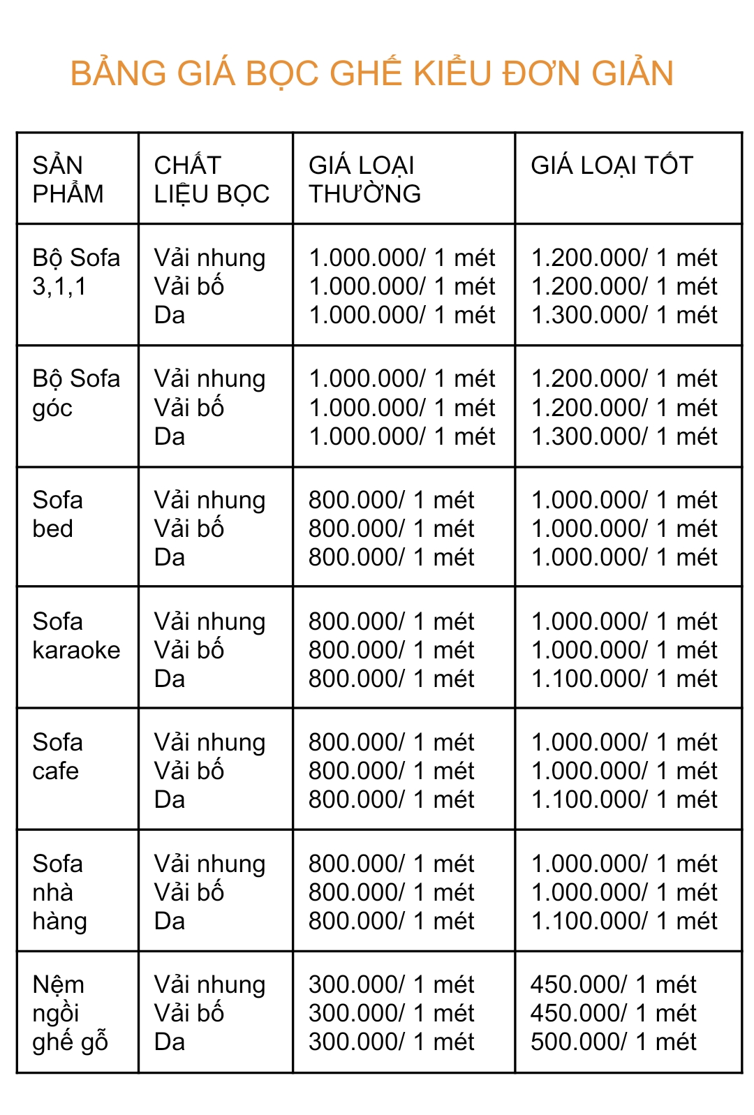 Bọc lại sofa là giải pháp tốt nhất hiện nay cho khách hàng. Khi họ muốn bộ sofa cũ của mình trở tành sofa mới. Giúp không gian đẹp và sang trọng hơn. Thay vì bỏ một khoản tiền khá lớn để sắm bộ sofa mới, thì giờ đây với việc sử dụng các dịch vụ bọc ghế sofa. Khách hàng có thể tiết kiệm lên tới 60-70% giá tiền cho bộ ghế sofa mới. Chính vì cảm nhận được lợi ích của việc bọc mới ghế sofa. Rất nhiều khách hàng đã bắt đầu tìm hiểu bọc lại ghế sofa giá bao nhiêu? Và bắt đầu tìm kiếm các đơn vị chuyên bọc ghế sofa tại khu vực mình đang sống. Để giải đáp cho vấn đề này, sofa Việt Tín xin đưa ra bảng giá bọc sofa để quý khách tham khảo.